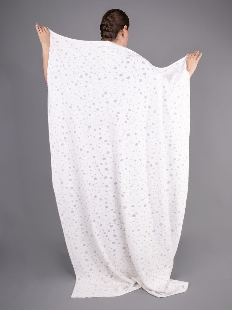Плед Snowspot согреет в холодные дни и подарит ощущение праздника и волшебства. Его дизайн вдохновлен красотой спокойного зимнего дня: плед будто украшен мягкими хлопьями снега. Перед глазами сразу встает картина умиротворяющего неспешного снегопада с мерно кружащимися пушистыми снежинками: так легко забыть обо всех заботах, погрузившись в это настоящее очарование зимы!
