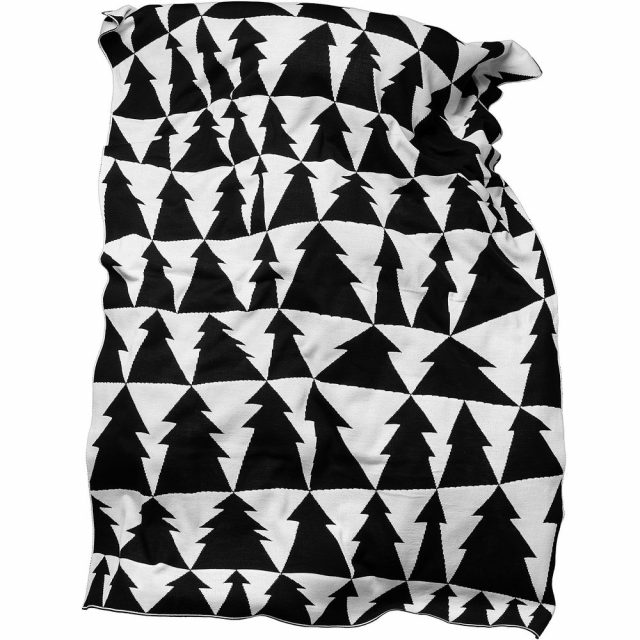 Мягкий графичный плед в скандинавском стиле «Танцующий лес» настраивает на позитив: жизнь складывается не из ровных черно-белых полос, а причудливых забавных фигур. А под Новый год почему бы этим фигурам не стать елками?