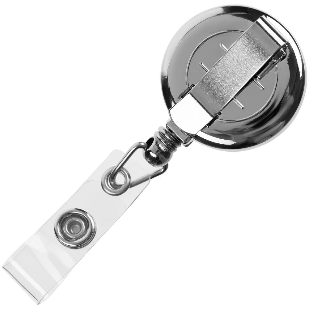 Ретрактор крепится к одежде, а с другой стороны можно поместить бейдж, визитку или магнитную карту. В корпусе спрятан сворачивающийся шнур, который позволяет при необходимости демонстрировать содержимое держателя, не снимая его.