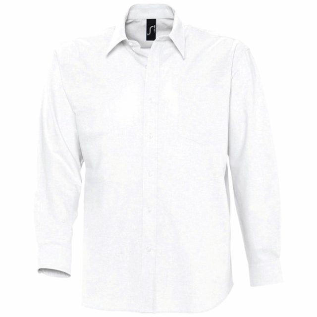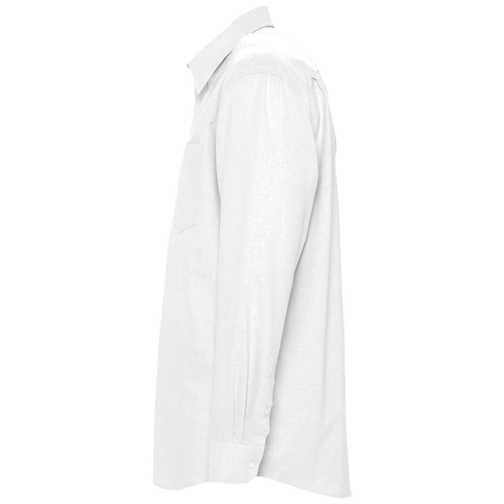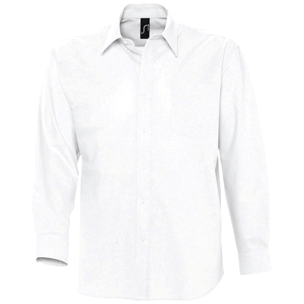Рубашка из ткани «Оксфорд» с нагрудным карманом слева. На спинке две симметричные складки, воротник на двух пуговицах, регулируемые манжеты, планка с семью пуговицами в тон.