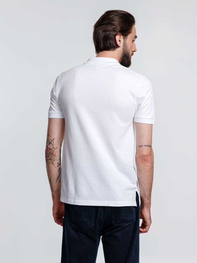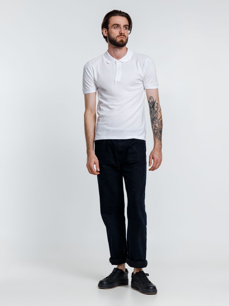 Мужская рубашка поло прямого силуэта с разрезами по бокам.