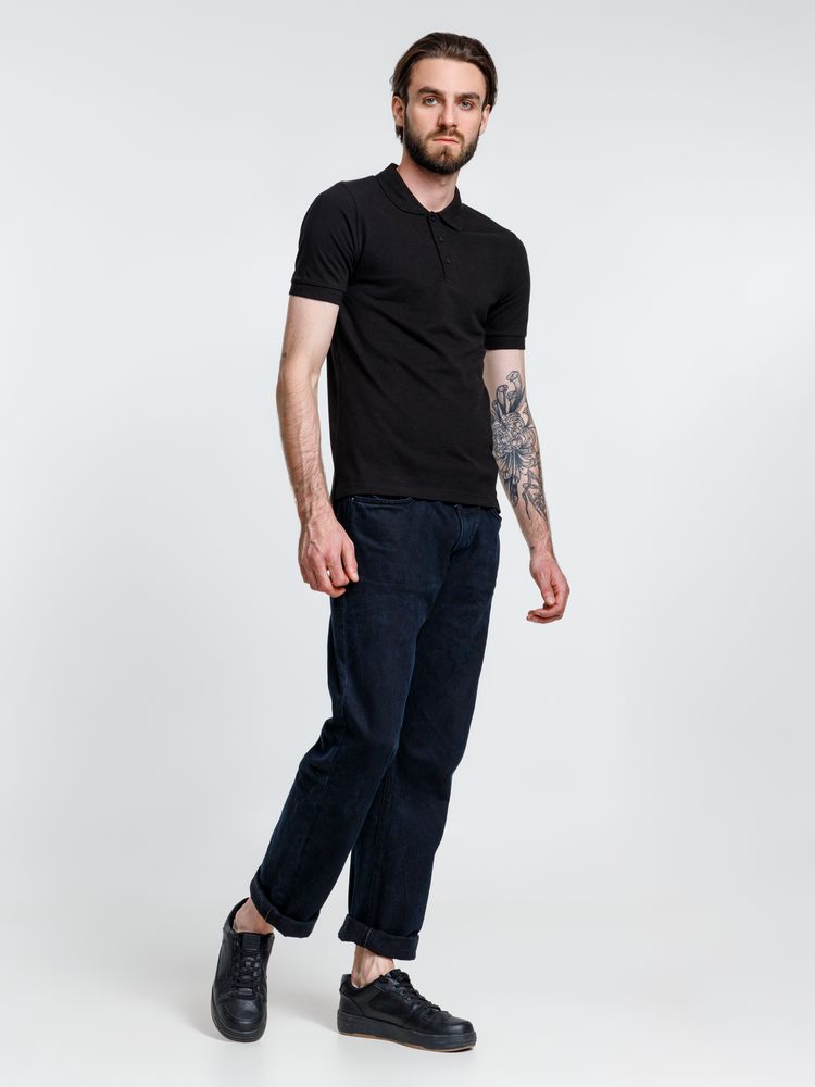 Мужская рубашка поло прямого силуэта с разрезами по бокам.