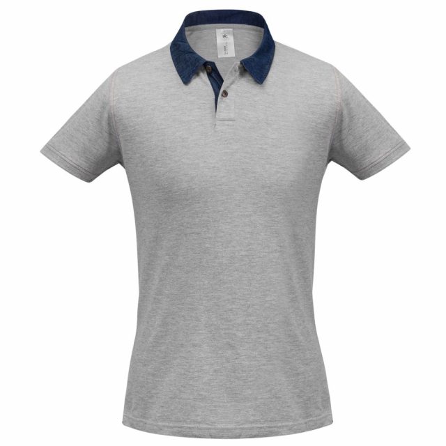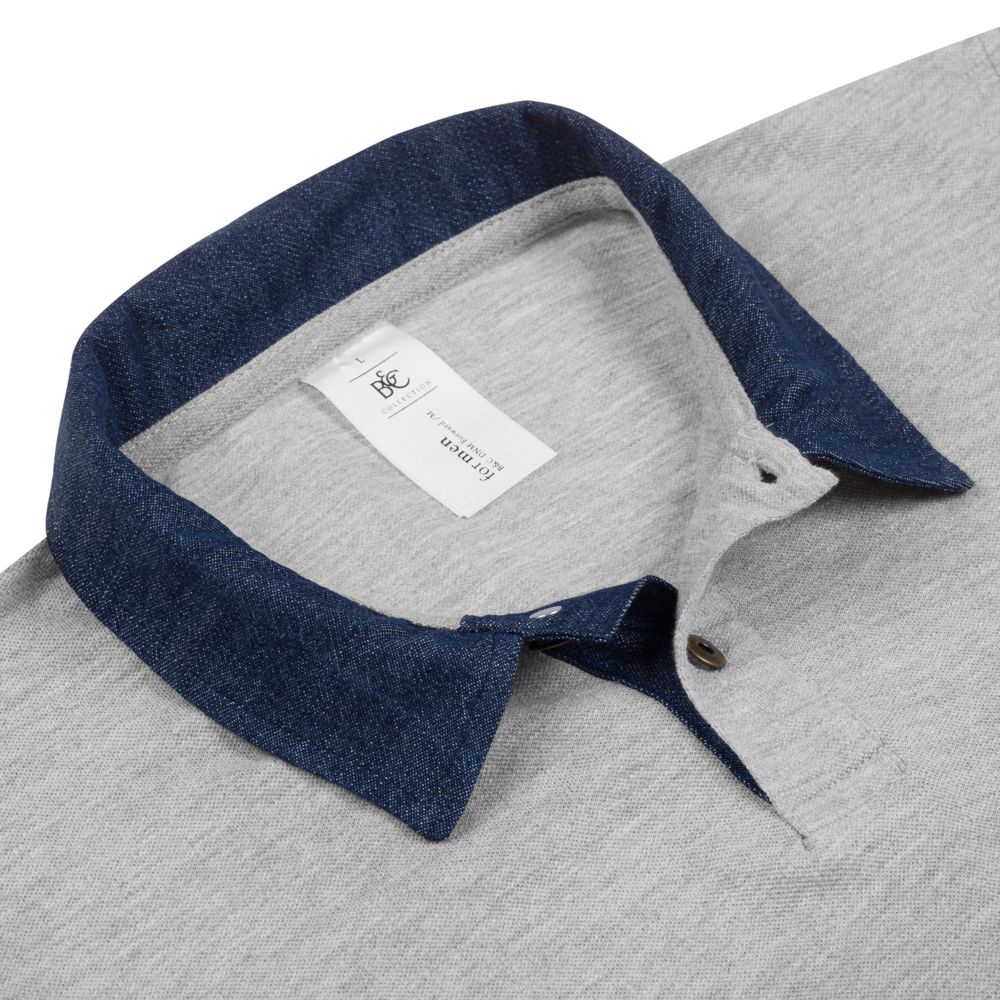 Рубашка поло с джинсовым воротником и контрастной отстрочкой.