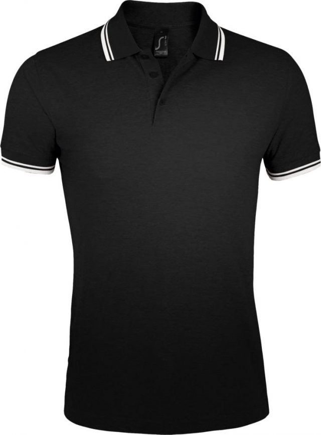 Рубашка поло мужская Pasadena Men 200 с контрастной отделкой, черная с белым