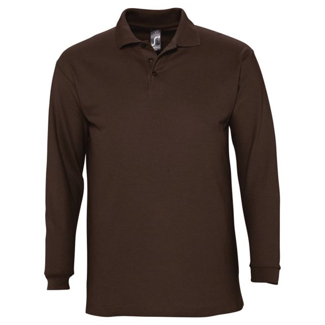Рубашка поло мужская с длинным рукавом Winter II 210 шоколадно-коричневая