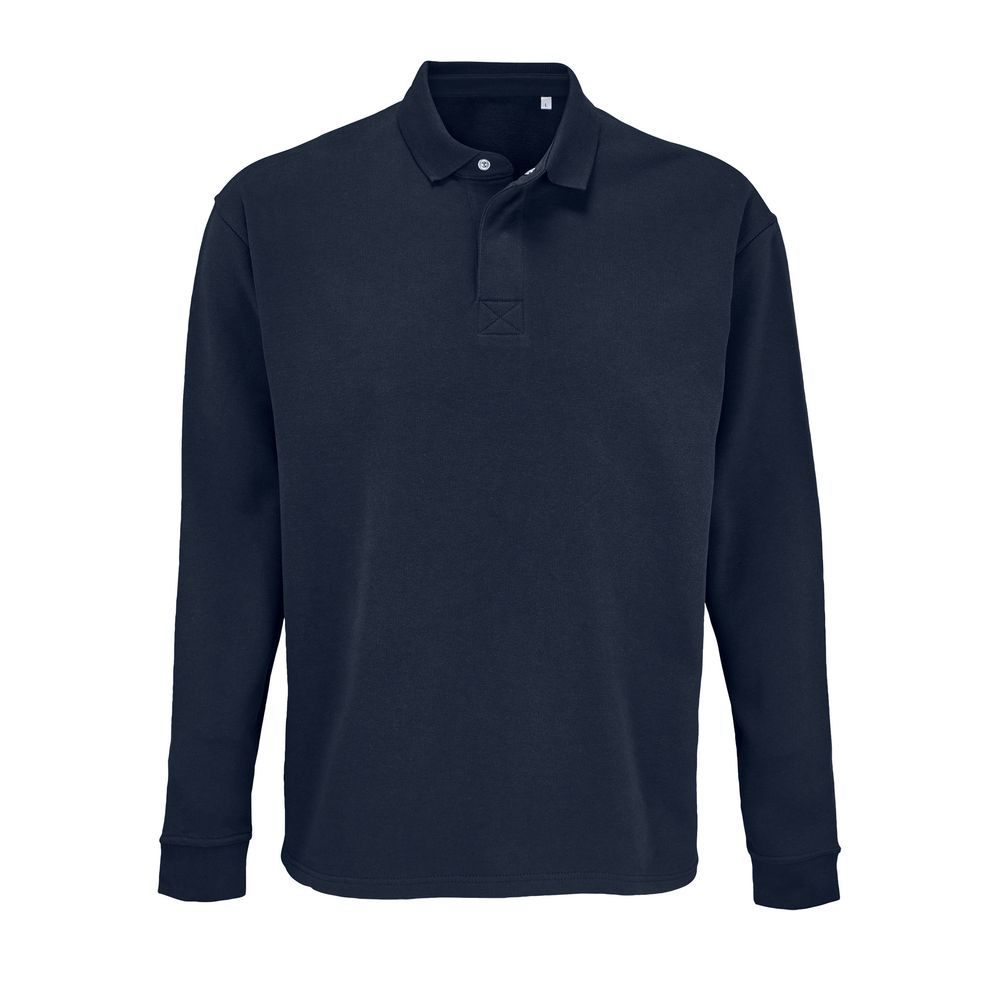 Рубашка поло из футера с длинным рукавом и спущенным плечом.