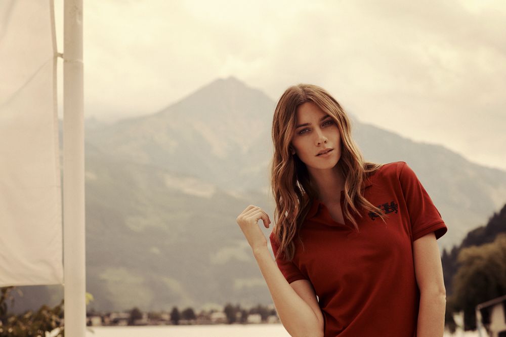 Женская рубашка поло стретч с эластаном марки Lycra.