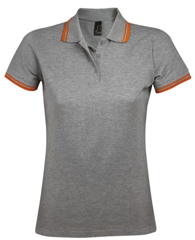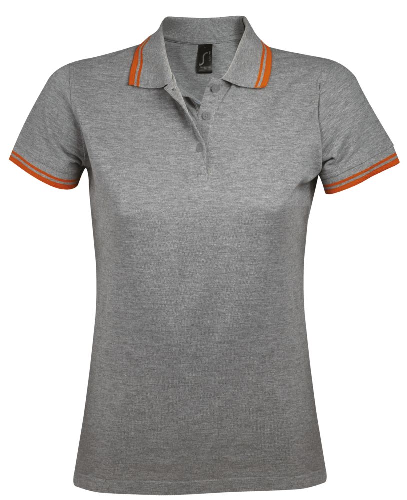 Рубашка поло женская Pasadena Women 200 с контрастной отделкой, серый меланж c оранжевым