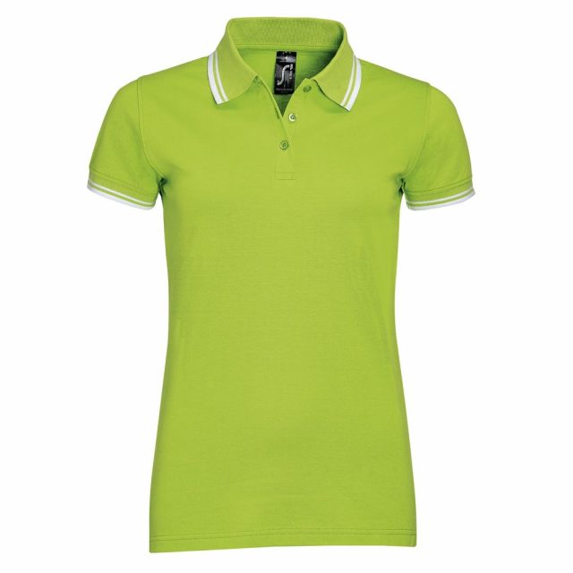 Рубашка поло женская Pasadena Women 200 с контрастной отделкой, зеленый лайм с белым