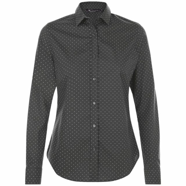 Модная рубашка с печатным рисунком в горошек, которая прекрасно впишется в современный корпоративный стиль.Приталенная модель с нагрудными вытачками, маленьким классическим воротничком, планкой с 7 пуговицами тон в тон и манжетами на 1 пуговице с разрезом «капуцин».