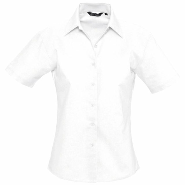Рубашка из ткани «Оксфорд». Вытачки на груди, классический воротник, планка с семью пуговицами в тон.