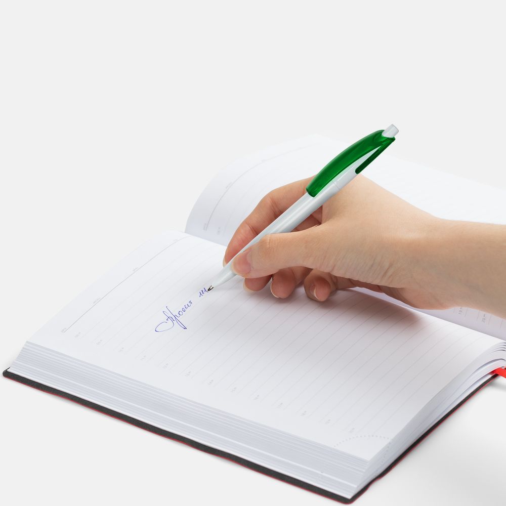 Ручка шариковая Bento, белая с зеленым