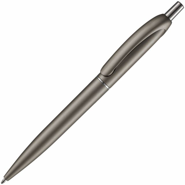 Шариковая пластиковая ручка в корпусе с эффектом «металлик» и серебристыми деталями. Приятная округлая форма клипа добавляет ручке плавности и объема.