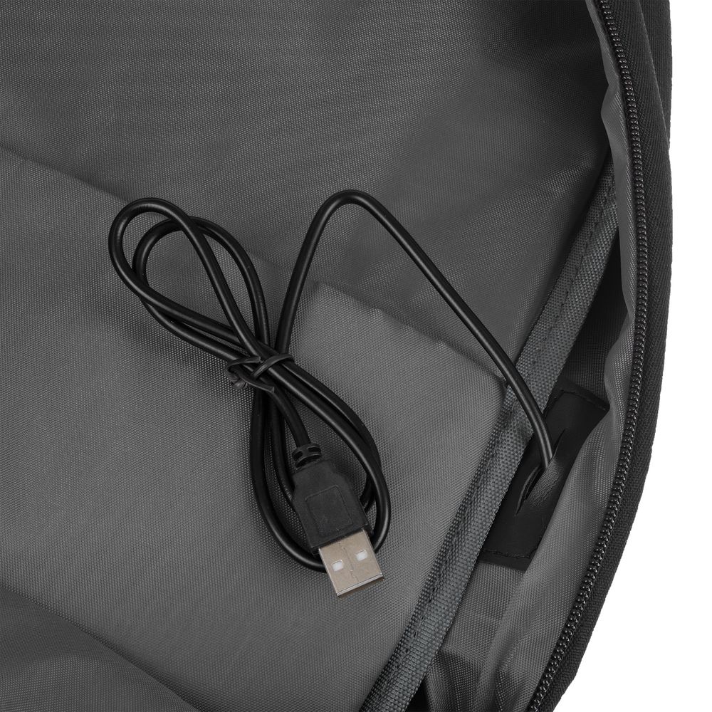 • Внешний USB-порт для зарядки гаджетов (внутри рюкзака — провод для подключения)