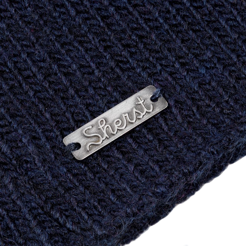 Металлический шильд с названием бренда расположен у заднего шва шапки. Это оставляет место спереди для пришива лейбла или шильдика с логотипом заказчика.