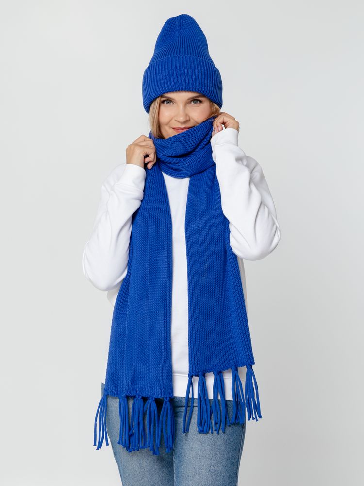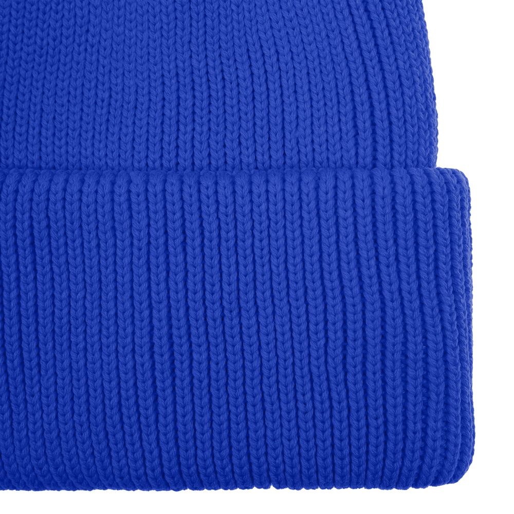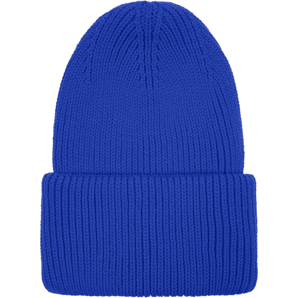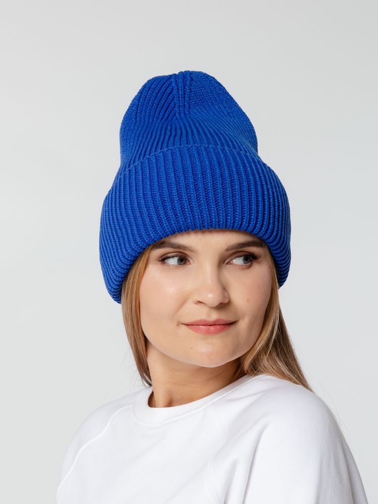 Удлиненная шапка объемной фактурной вязки с отворотом.