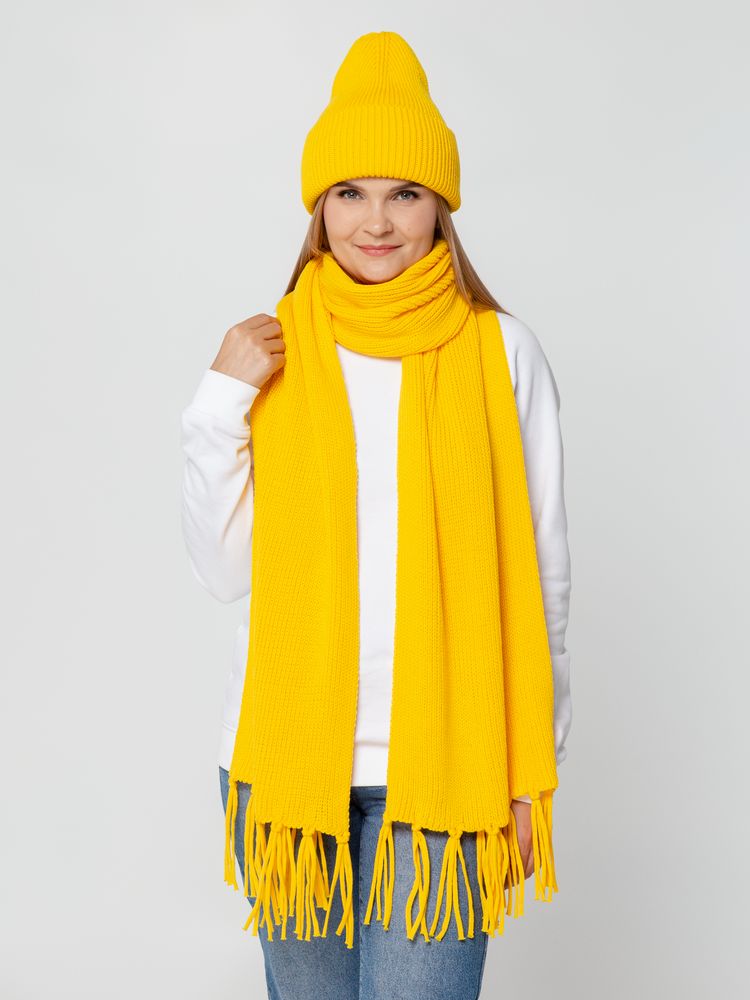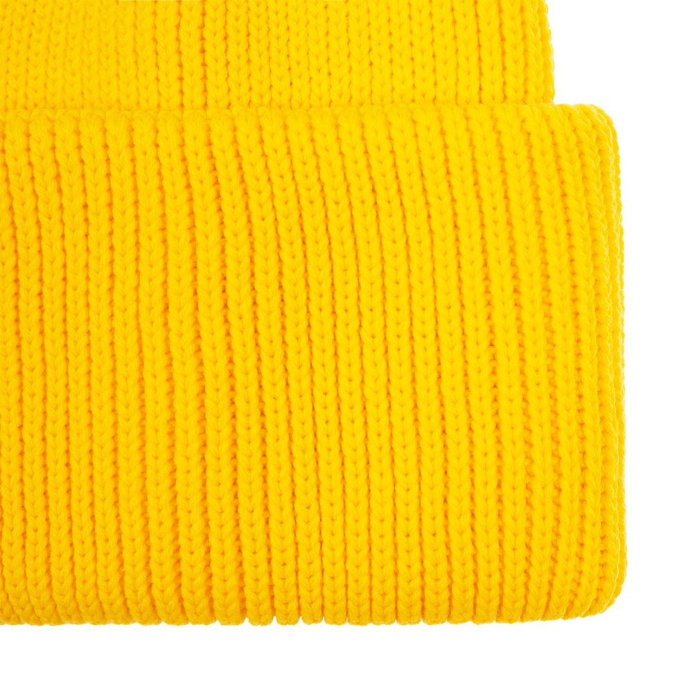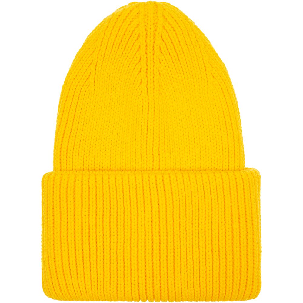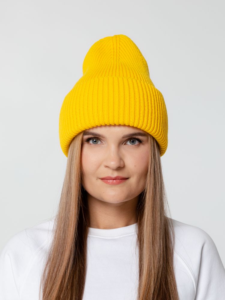 Удлиненная шапка объемной фактурной вязки с отворотом.