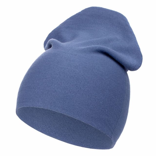 Двухслойная шапка-бини тонкой вязки, которую можно носить как с подворотом, так и без.
