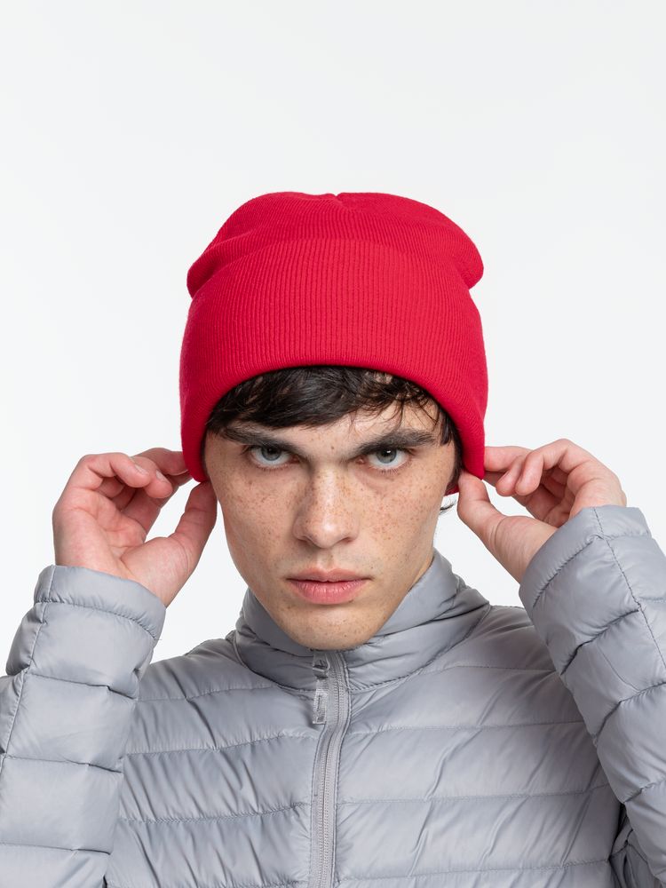 Двухслойная шапка из акриловой пряжи с регулируемым отворотом 7–10 см.