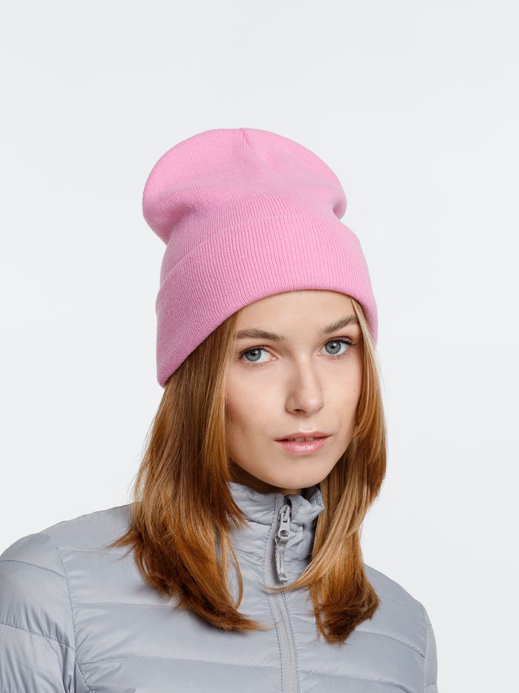Двухслойная шапка из акриловой пряжи с регулируемым отворотом 7–10 см.