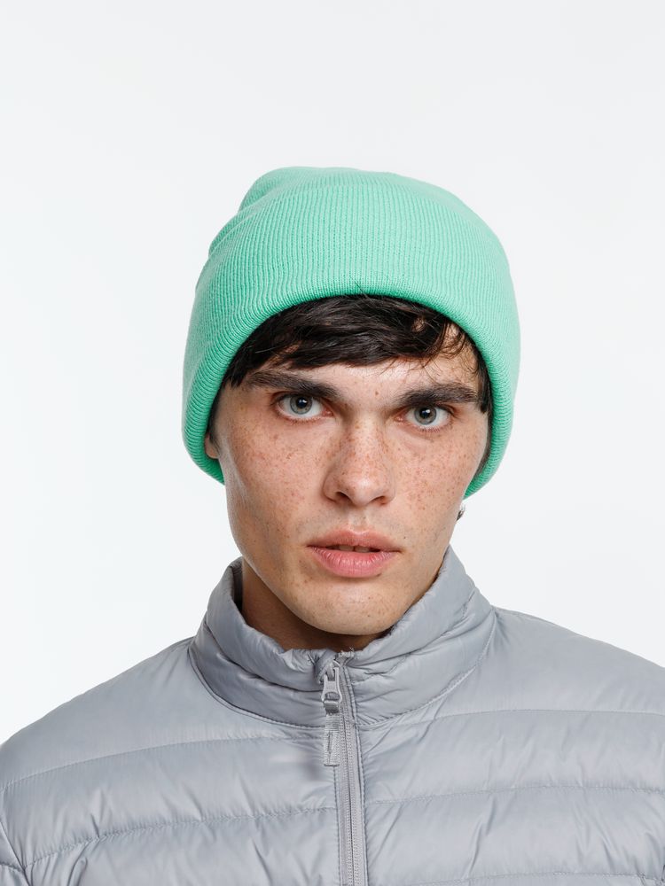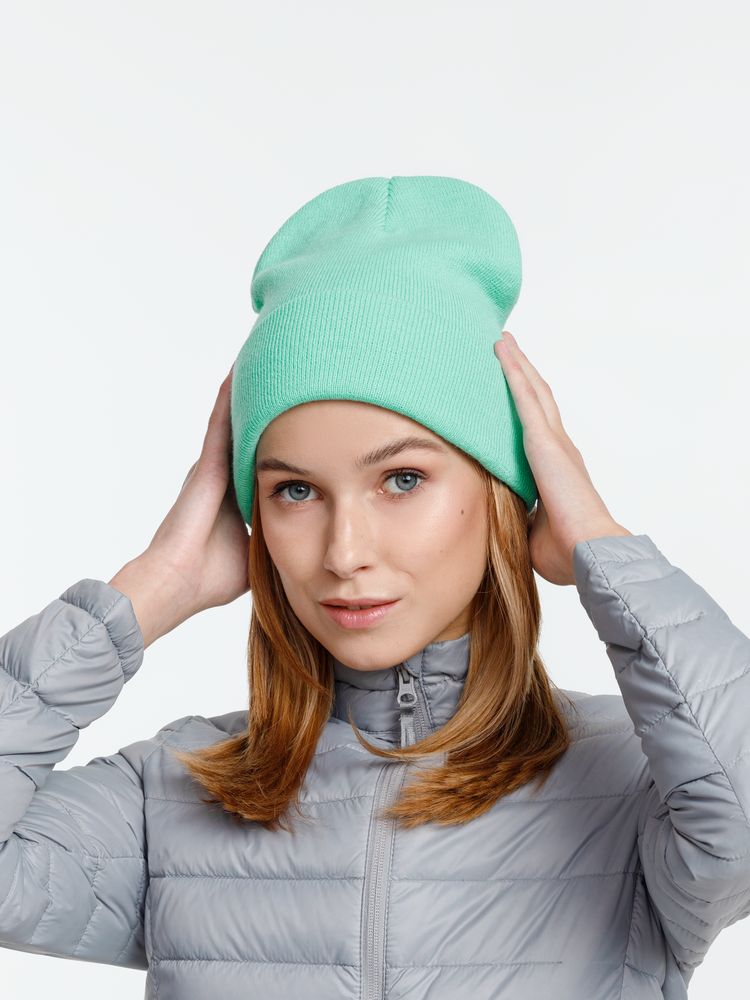 Двухслойная шапка из акриловой пряжи с регулируемым отворотом 7–10 см.