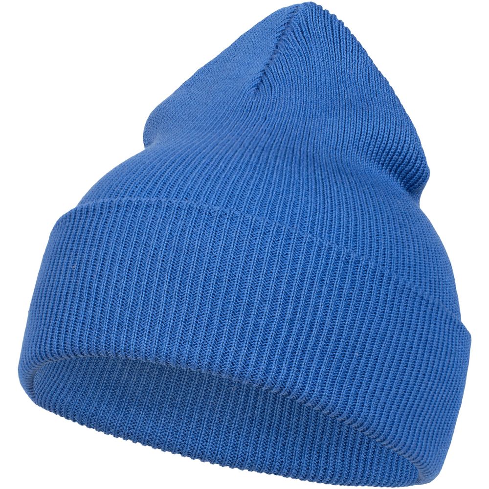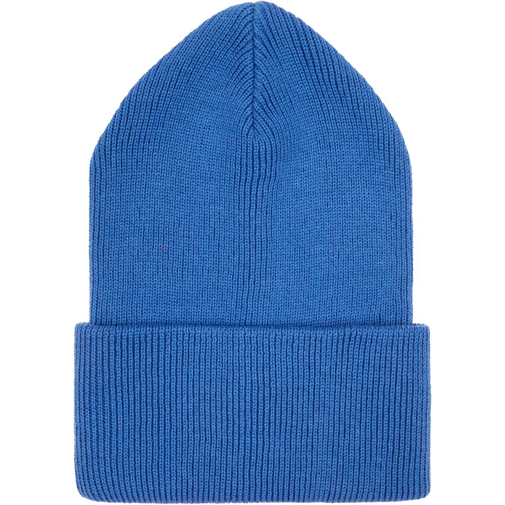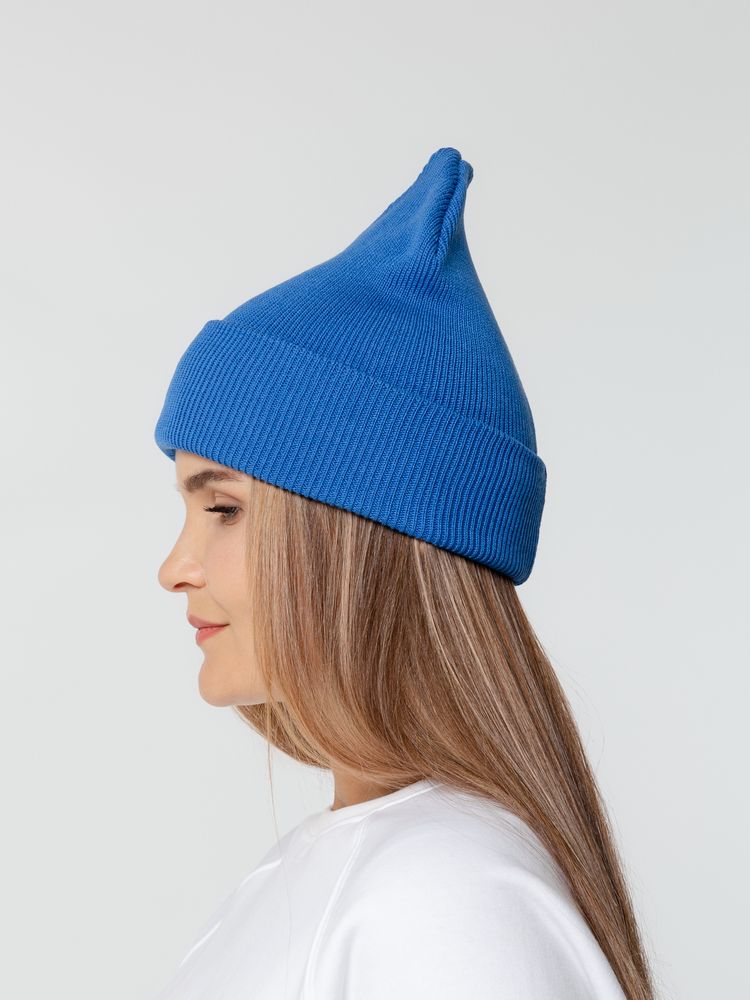Двухслойная шапка, связанная резинкой, с широким отворотом.