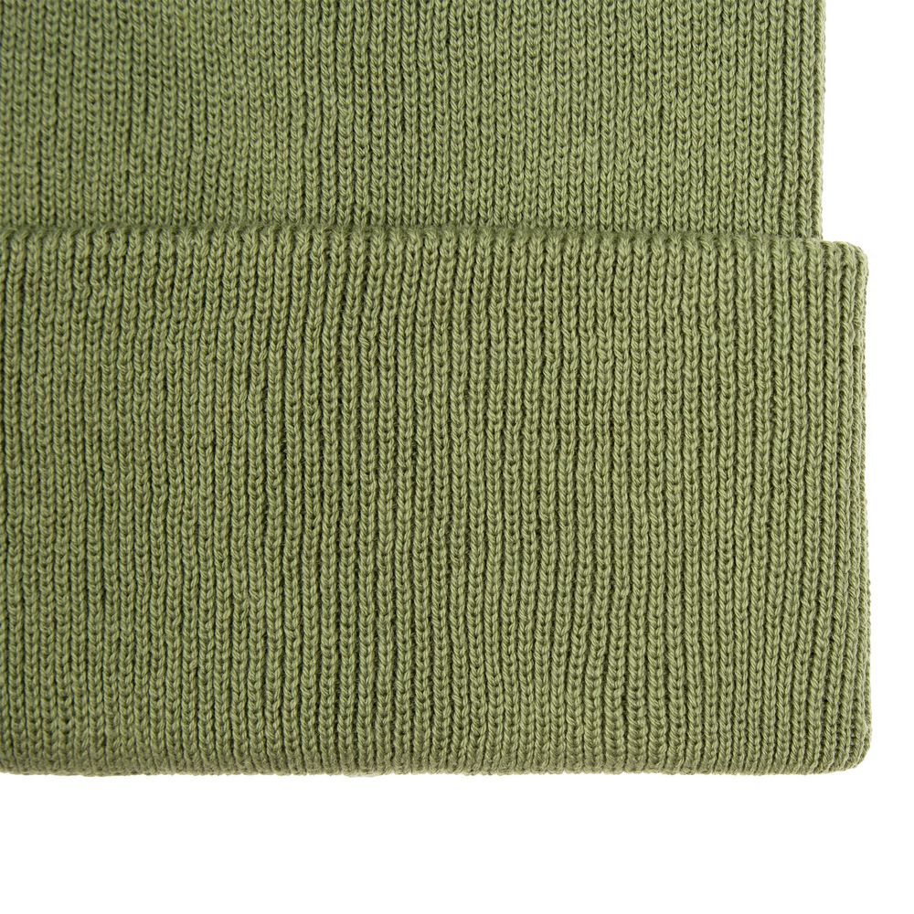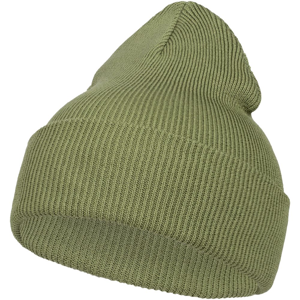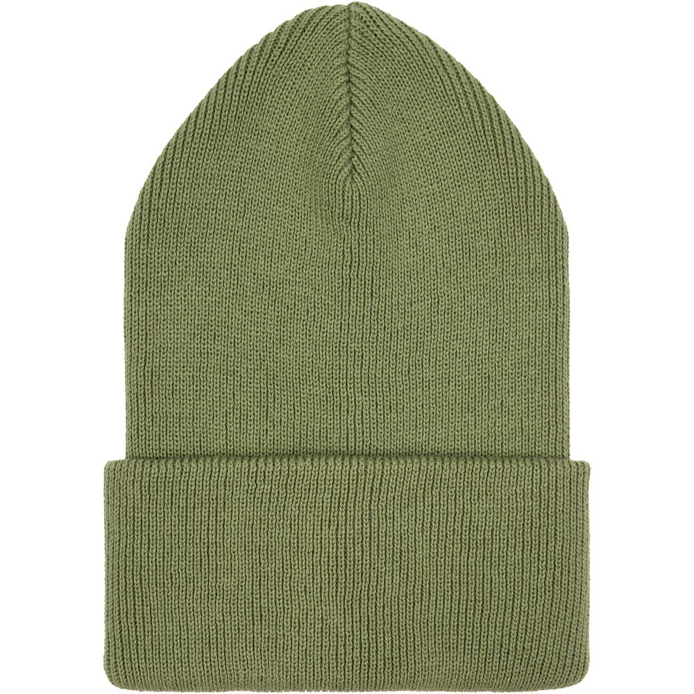 Двухслойная шапка, связанная резинкой, с широким отворотом.