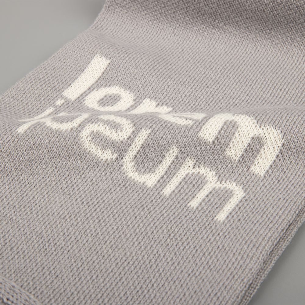 Шарф с вывязанным логотипом и индивидуальным рисунком в фирменной цветовой гамме.