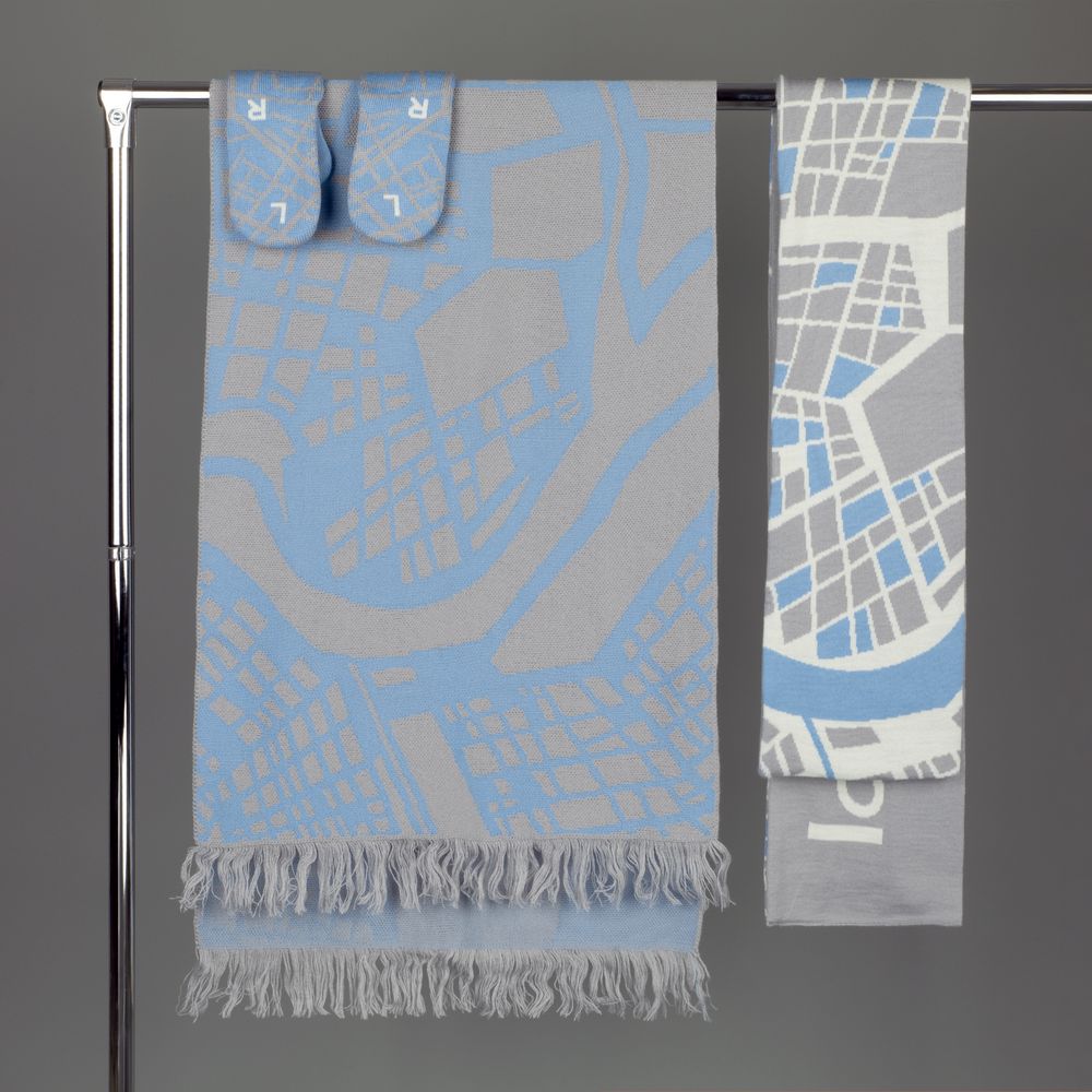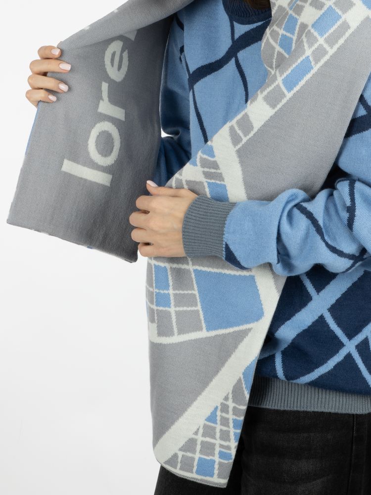 Модель: классический двуслойный шарф с жаккардовым узором в 2-3 цвета. Шарф вяжется сплошным полотном, затем его складывают пополам и сшивают так, что обе его стороны получаются лицевыми, а изнанка не видна. Это позволяет вывязывать на разных сторонах разные узоры.