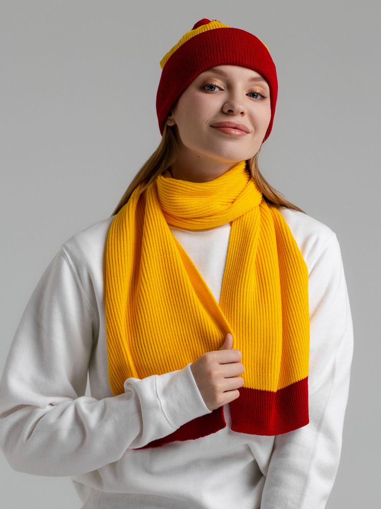 Двухслойный шарф фактурной вязки с контрастной отделкой.