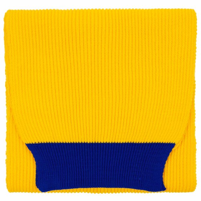 Двухслойный шарф фактурной вязки с контрастной отделкой.