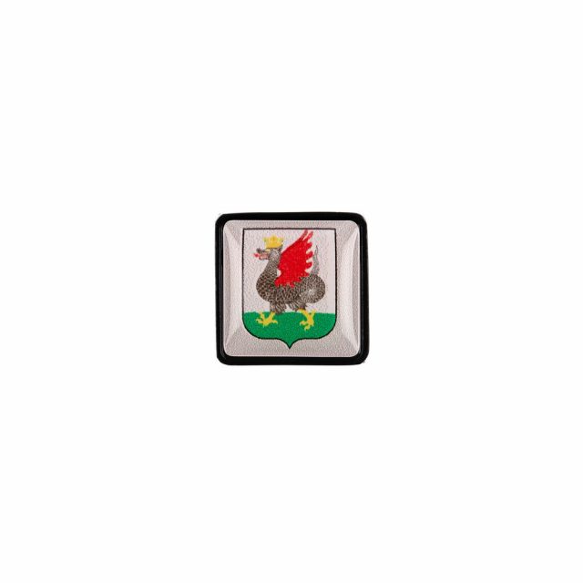 Металлический шильдик с объемной наклейкой под смолой с изображением герба одного из 14 крупных городов Российской Федерации — простой и элегантный способ показать региональную принадлежность компании, обозначить расположение филиалов или напрямую обратиться к клиентам из определенного города.