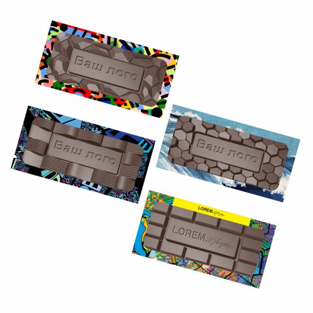 Барельефный шоколад с логотипом в индивидуальной упаковке с окошком.