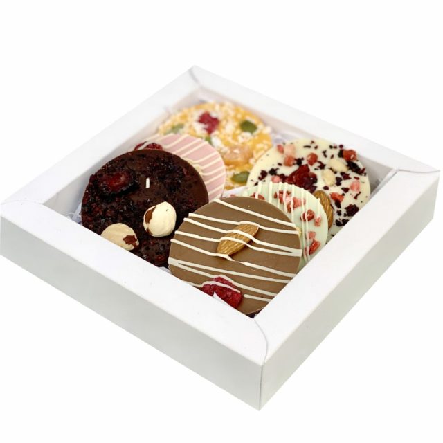 Шоколадные конфеты Mendiants — это яркий праздничный комплимент и настоящее гастрономическое путешествие.В наборе 6 медиантов с разными вкусами: медиант из молочного шоколада с сублимированной малиной и миндалем; медиант из лаймового шоколада с фисташкой и сублимированной клубникой; медиант из темного шоколада с фундуком, клюквой и черной смородиной; медиант из белого шоколада с клюквой; медиант из апельсинового шоколада с тыквенной семечкой и цукатами; медиант из клубничного шоколада с клубникой и миндалем.