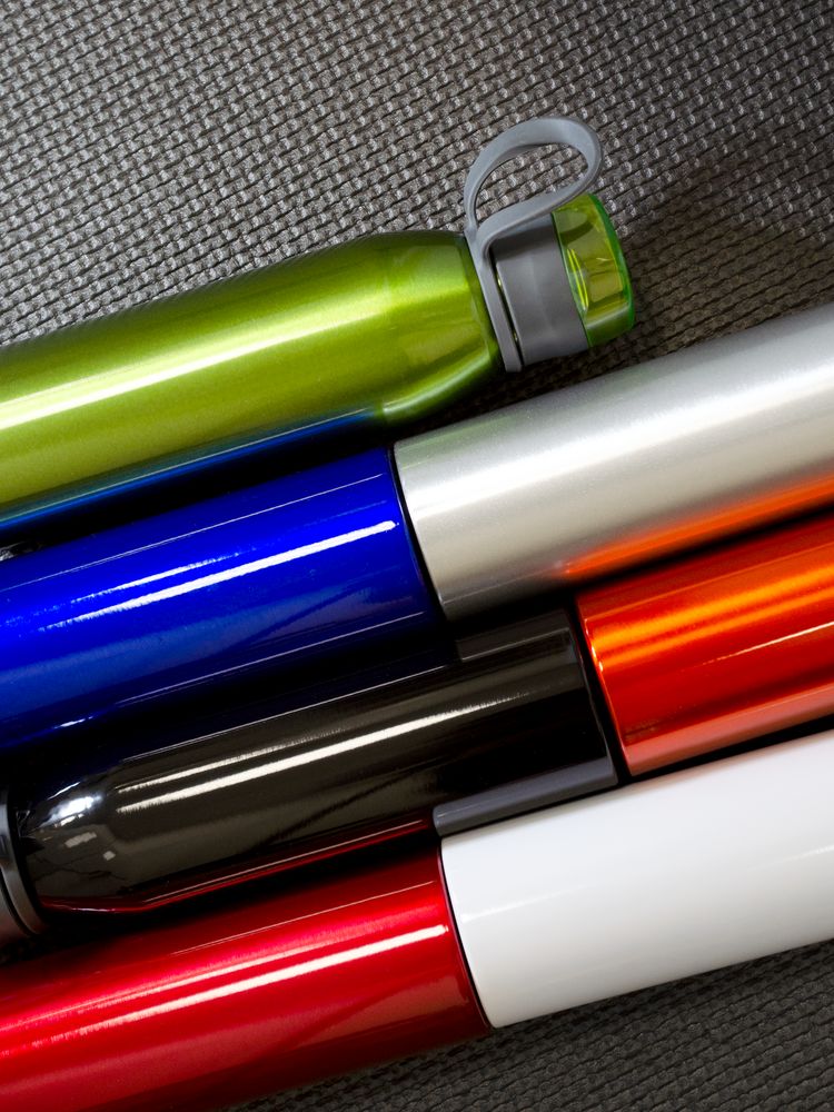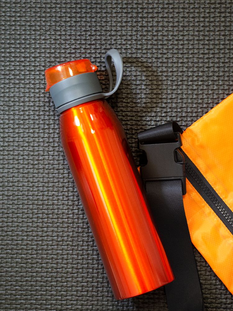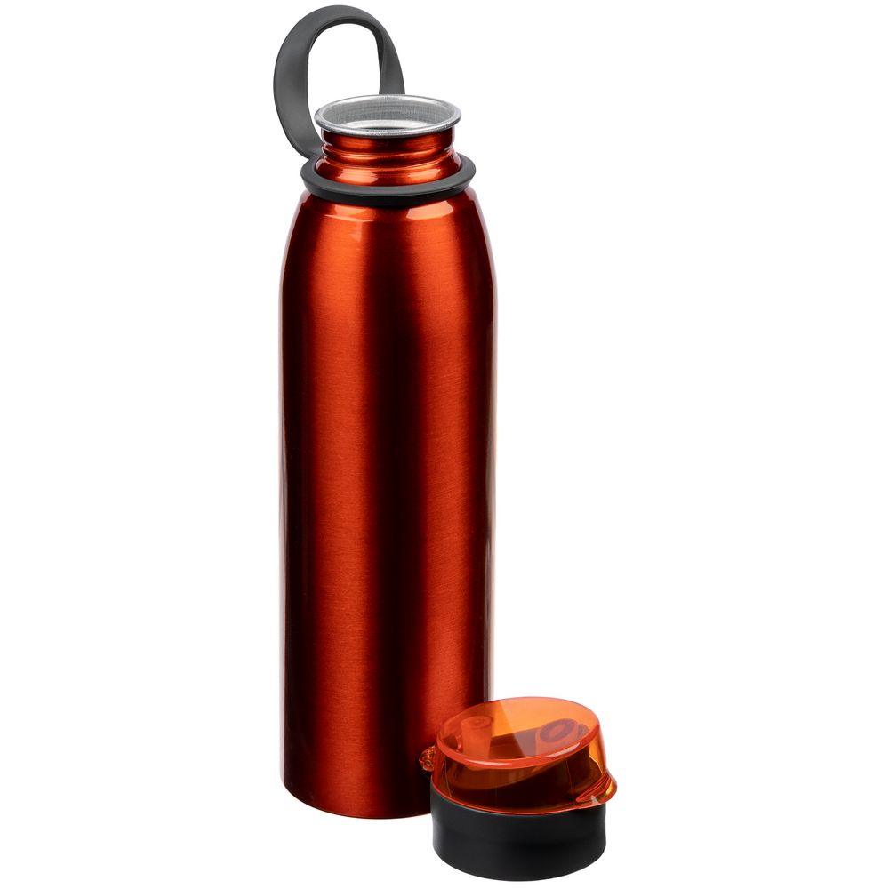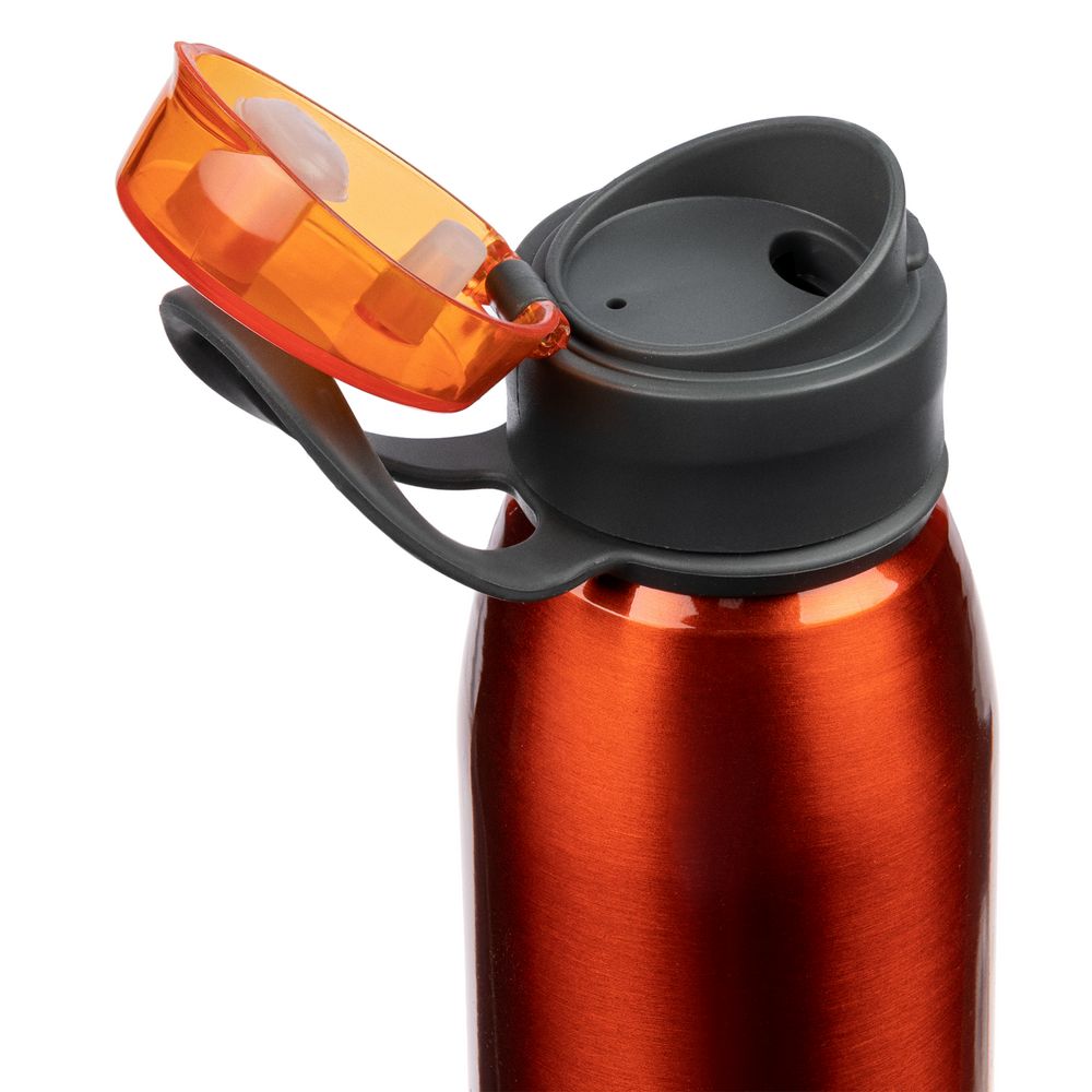 Легкая бутылка для спорта с откидной крышкой и силиконовой петлей для транспортировки.