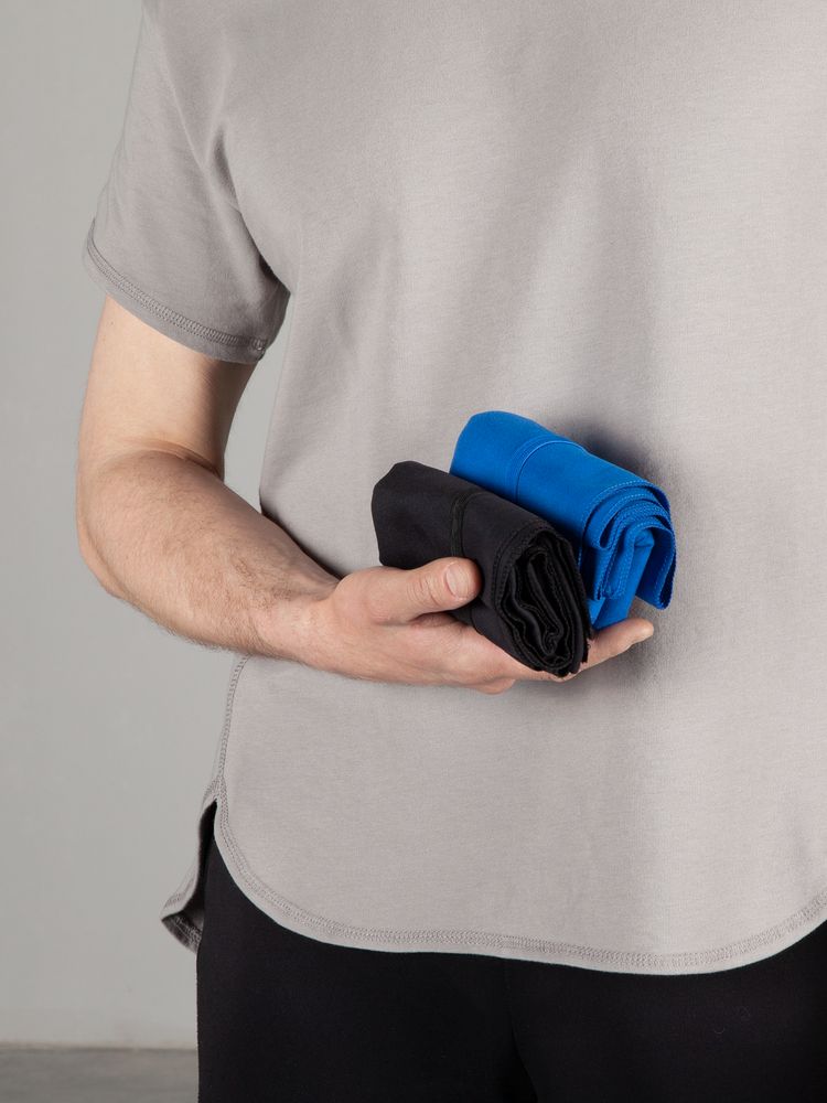 Продуманная деталь: полотенце легко сворачивается и закрепляется резинкой тон в тон, а значит, не займет много места в сумке.
