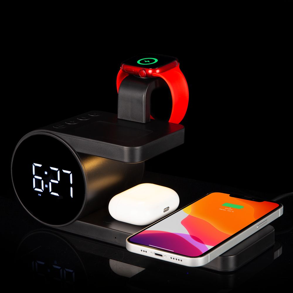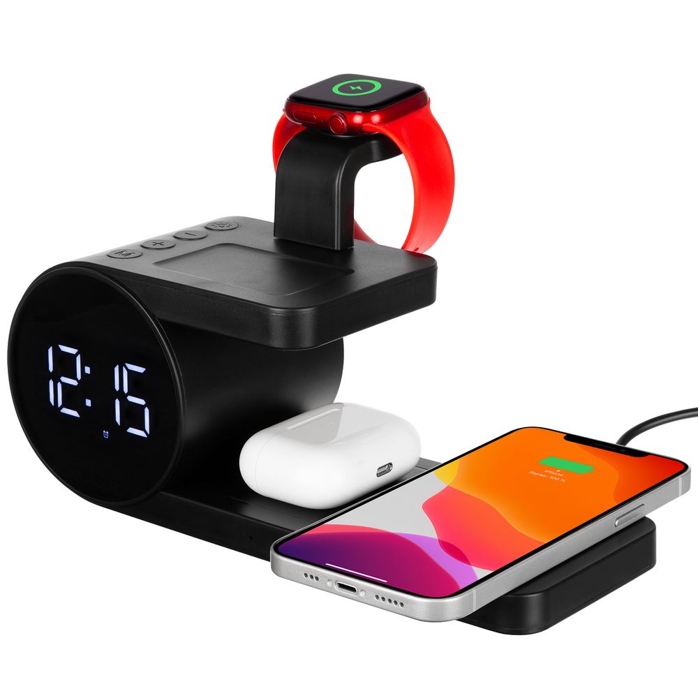 Зарядная станция совместима со всеми смартфонами, поддерживающими технологию беспроводной зарядки Qi. Также предусмотрено место для зарядки часов Apple Watch и всех типов наушников с поддержкой Qi. Зарядка начнется автоматически при размещении устройств на индукционной площадке.