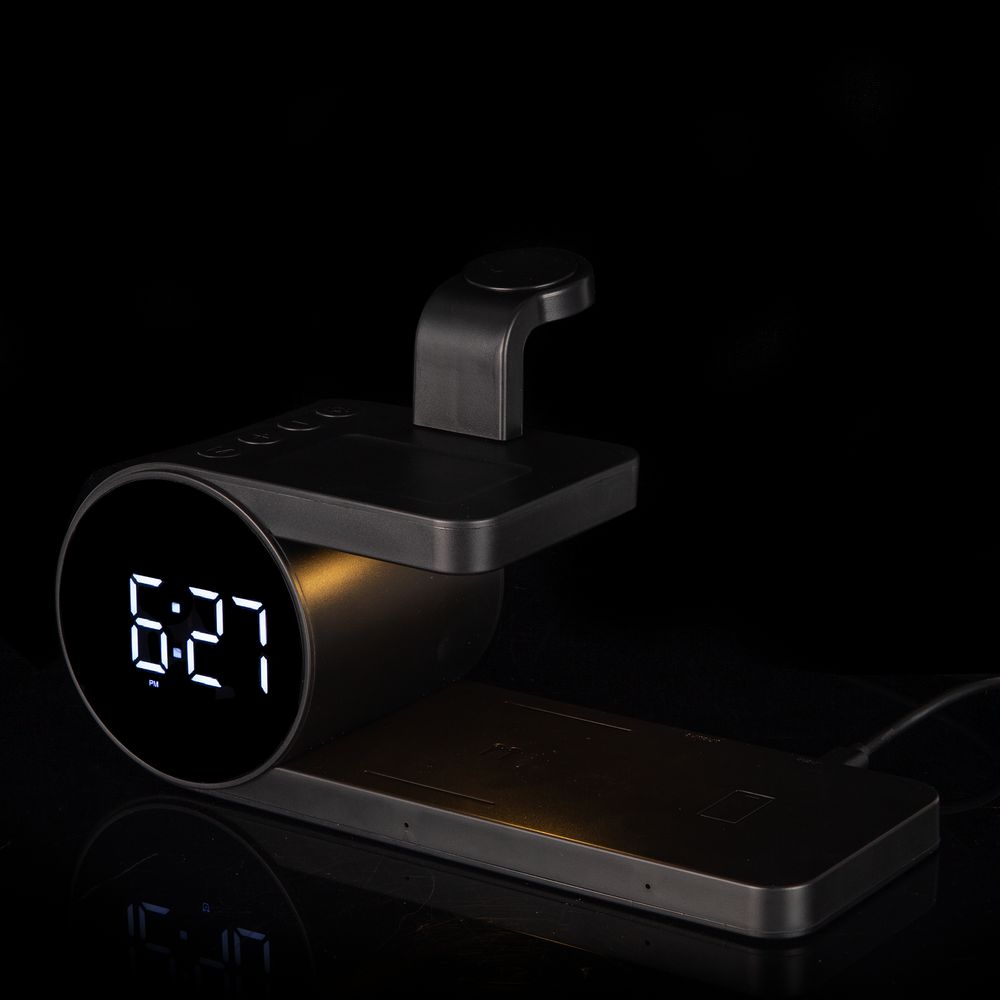 fullStack — технологичное многофункциональное устройство, которое сразу сочетает в себе станцию беспроводной зарядки разнообразных устройств, электронные часы с будильником и ночную лампу.