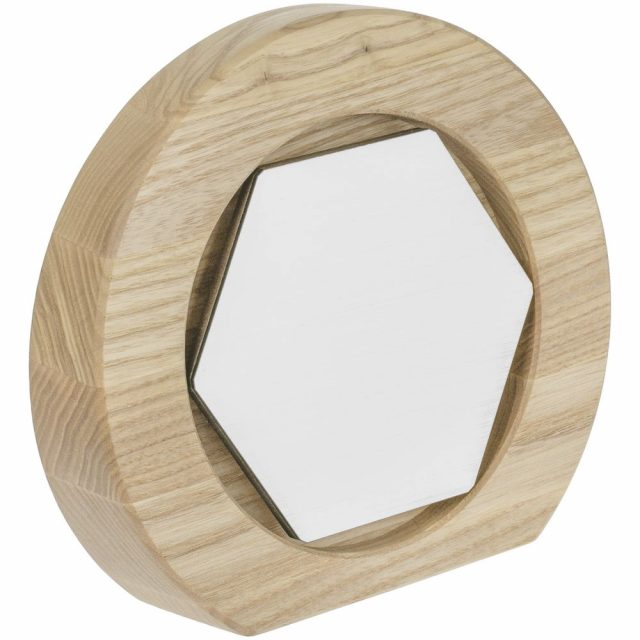 Вставка с шестигранником из зеркального пластика на деревянной основе крепится на приподнятое основание внутри стелы, что создает объем и многослойность награды. На вставке предусмотрен клеевой слой для крепления после нанесения.
