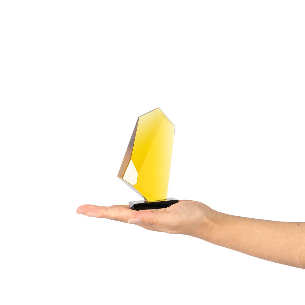 Эта стела-кристалл с легкостью поместится на ладони и подарит бурю положительных эмоций при награждении! Оригинальные стелы Cristallino напоминают эстетичные обломки настоящих кристаллов или минеральных камней, притягательных в своей уникальности и естественной простоте. Благодаря материалу — премиальному стеклу К9 — и особой технике окрашивания рождается оптический эффект: свет преломляется сквозь цветные грани, делая всю награду живой и яркой.