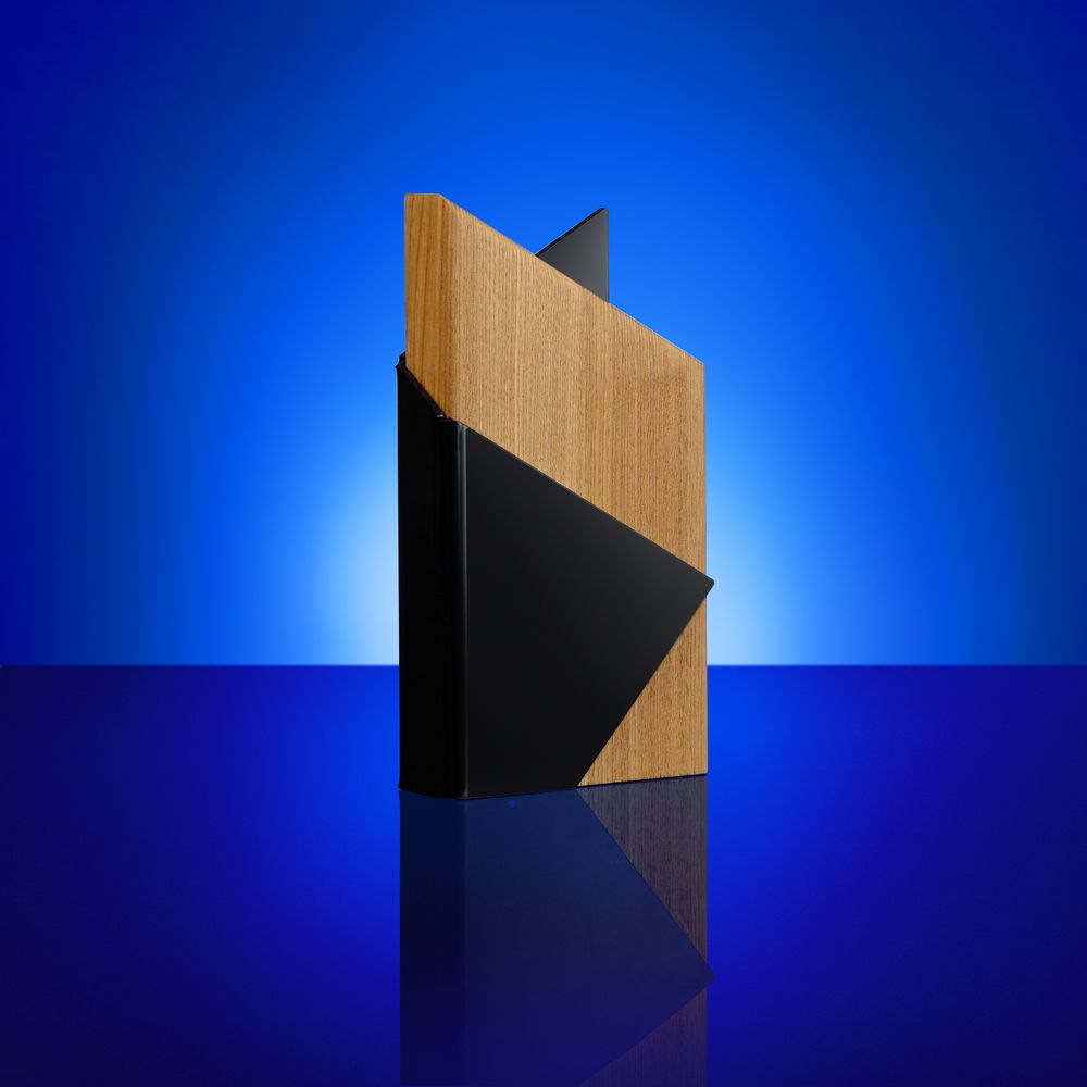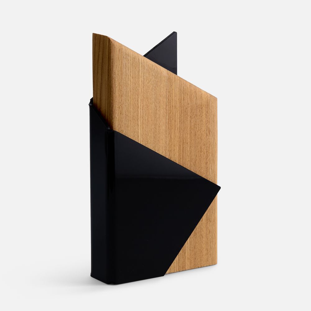 Majestas — уникальная стела с необычным дизайном. Выполненная из цельного бруса ясеня и гнутого цветного акрила эта стела станет украшением любого интерьера.