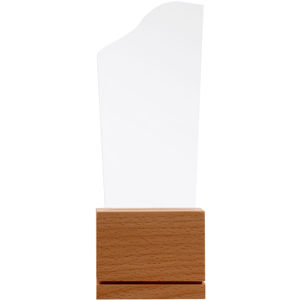 Стела New Tribute — это массивное основание из бука с гладкой фактурой и тонкая прозрачная вставка из акрила. Идеальный баланс устойчивости и легкости важен не только для создания награды привлекательной формы, но и для достижения результата, который этой наградой будет отмечен.