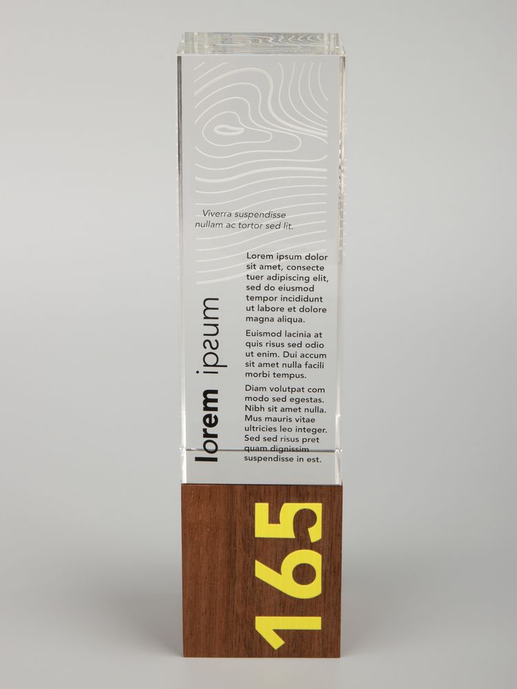 Стела Standpoint олицетворяет собой стойкость и уверенность настоящего профессионала своего дела. Она позволит прекрасно презентовать самые важные достижения и ознаменовать новую веху в развитии. Необычная комбинация материалов — дерева и стекла — позволяет оригинально поиграть с акцентами и создать запоминающуюся награду.