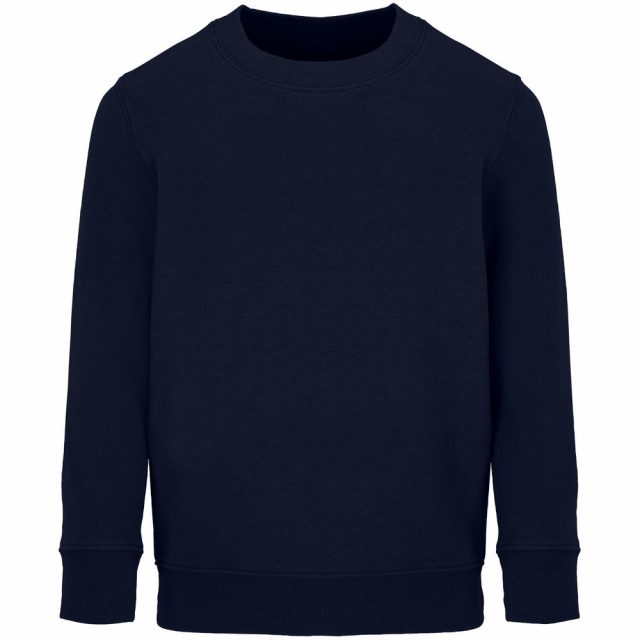 Детский свитшот из хлопка и переработанного полиэстера с круглым вырезом и втачным рукавом.