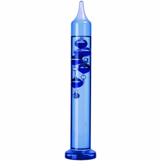Любопытный термометр, изобретенный великим Галилео Галилеем, который первым обнаружил, что плотность жидкости увеличивается при снижении температуры и уменьшается при ее повышении.