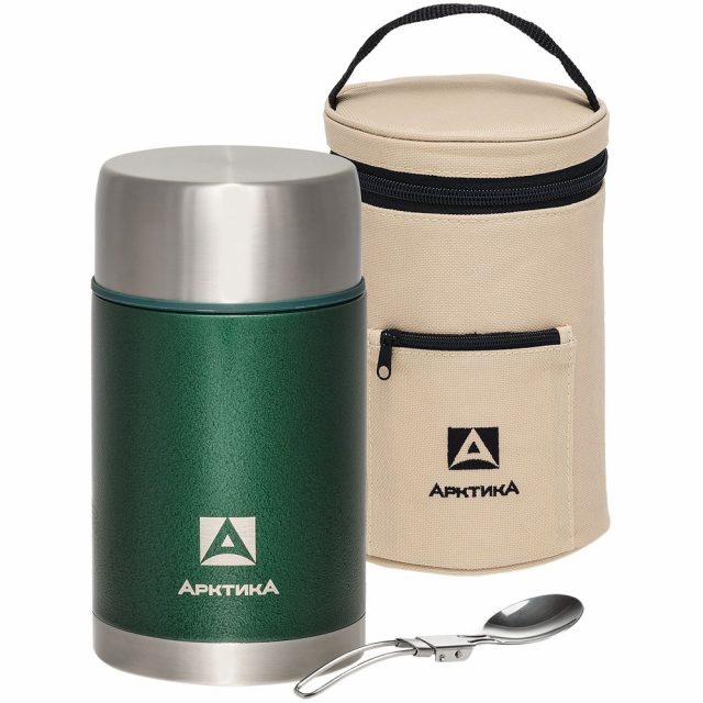 Готовый комплект для похода на природу: термос для еды с широким горлом и ударопрочным покрытием и легкая складная ложка в термочехле.Емкость 1 л.