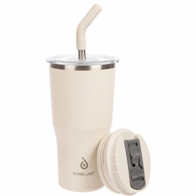 - 2 крышки в комплекте: одна на 100% герметичная с механизмом блокировки отверстия для питья, вторая — с отверстием для трубочки