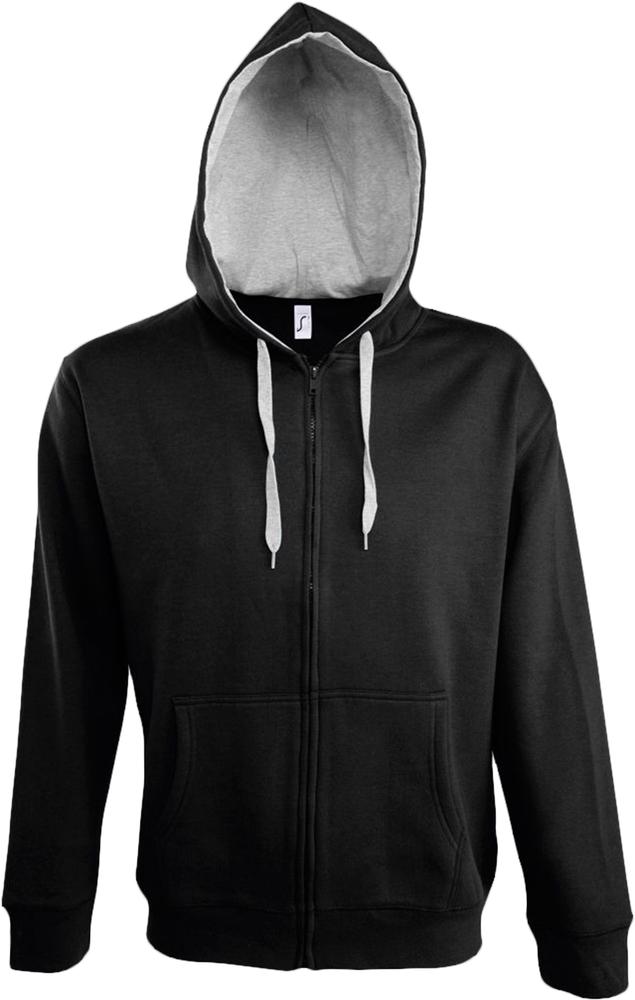 Толстовка мужская на молнии Soul Men 290 с контрастным капюшоном, черная
