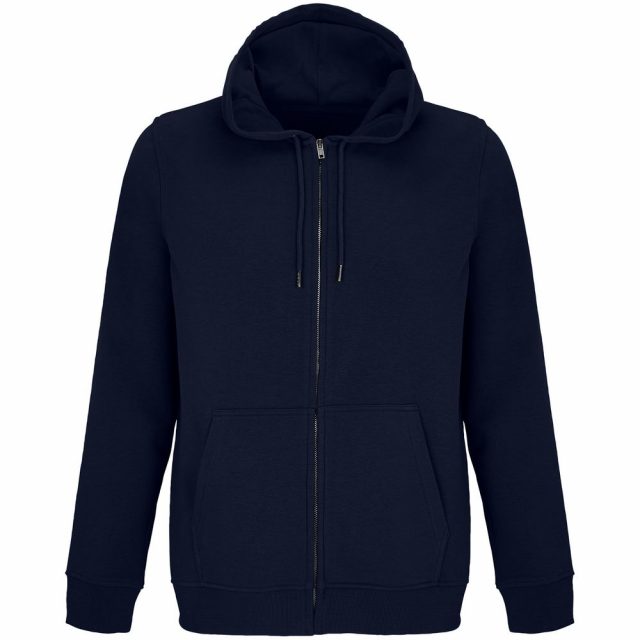 Базовая толстовка унисекс на молнии выполнена из органического хлопка и переработанного полиэстера.