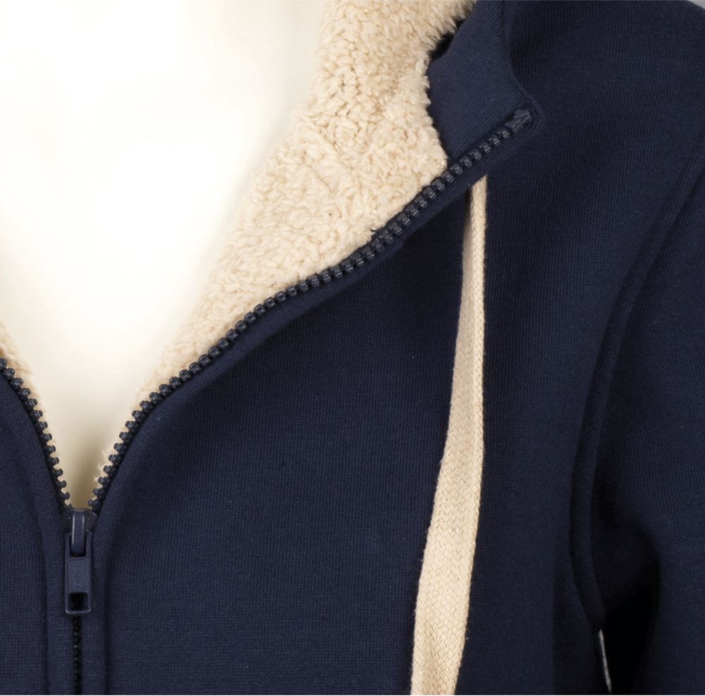 - Широкий съемный шнурок контрастного цвета на капюшоне